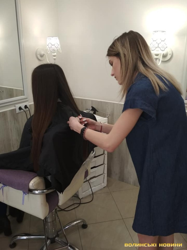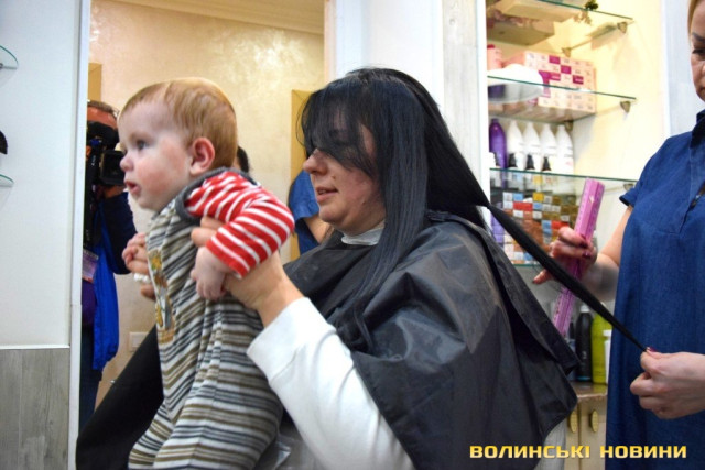 Журналістка Ольга Магас однією з перших погодилася віддати волосся. Жінка прийшла до перукарні у свій день народження.