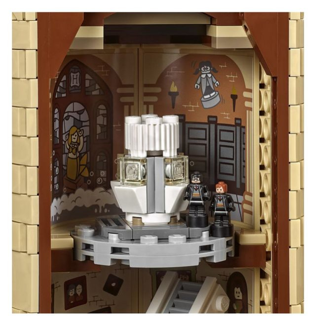 Замок має кабінет професора Дамблдора, вітальню Грифіндора, виручай-кімнати та інші приміщення. Поруч із замком можна розташувати будиночок Хагріда, таємну кімнату і вербу. У конструктор входять 27 фігурок персонажів, серед яких: Гаррі Поттер, Драко Мелфоя, Рон Візлі, Белатриса Лестранж і інші.