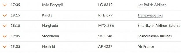 На сайті Талліннського аеропорту рейс з київського аеропорту "Бориспіль" вказаний Kyiv Boryspil.Сайт аеропорту Таллінна