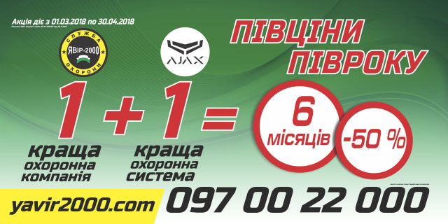 У компанії "Явір-2000" стартує всеукраїнська весняна акція "Півціни - півроку". Тож можна суттєво зекономити: замовити охоронну сигналізацію від "Явір-2000" з 1 березня по 30 квітня й отримати 50% знижки абонплати на півроку.