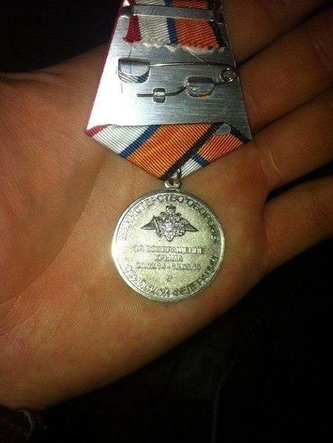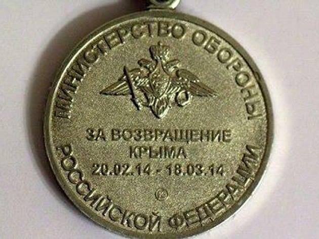 Чітко видно, що на медалі Міноборони Російської Федерації вказало термін проведення операції: 20.02.2014 - 18.03.2014 року. Про це повідомляє«Gazeta.ua»