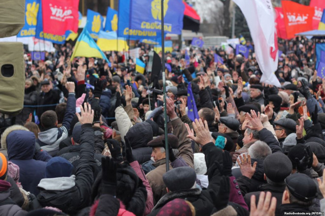 13:45 Зі слів очевидців, на площі - вже близько 10 000 людей.