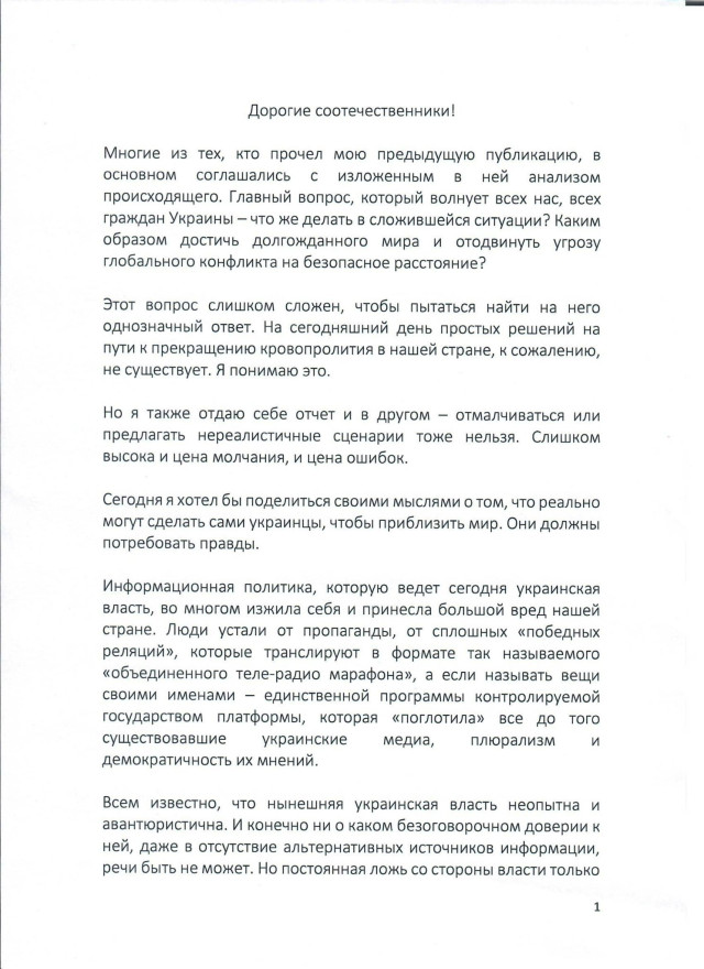 «Мені здається, що сьогодні як ніколи потрібна адекватна оцінка ситуації та повага до найрізноманітніших думок громадян України. Громадяни самі мають зробити вибір – воювати «до останнього українця» чи намагатися зберегти те, що ще залишилося», – заявив Янукович.
