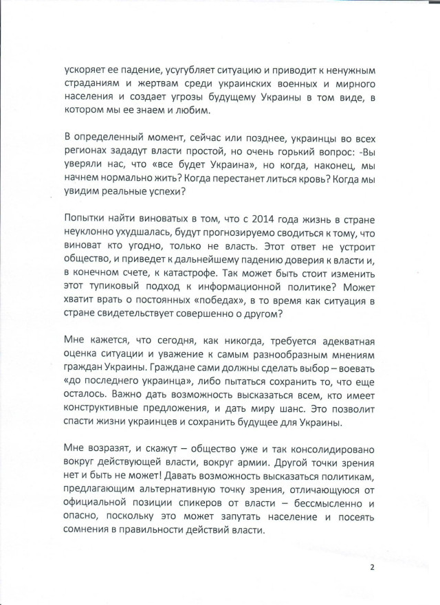 Він також закликав українців одуматися і не вірити владі, а саму владу – «перестати брехати про постійні «перемоги»».