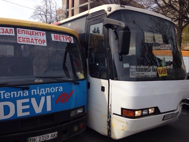 «Масштабна ДТП за участю п`ятьох транспортних засобів сталася напередодні в районі автовокзалу у Рівному. Близько 16 години рейсовий автобус Нововолинськ-Київ з невідомих причин зіткнувся з міською маршруткою. Четверо осіб постраждало.