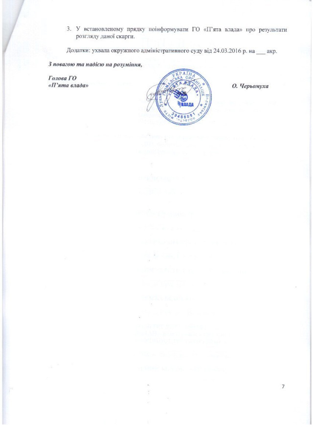 Довідково. Членами ГО «П’ята влада» є бійці АТО, захисники Донецького аеропорту, які також входять до складу антикорупційного комітетй при Громадській раді при ГУ Національної поліції у Волинські області, а голова – є професіональним юристом.