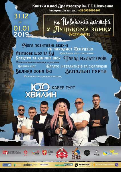 Драйву до свята додадуть і кавер-гурт «100 хвилин». Живий звук, сучасна музика, оригінальні аранжування – це все про один із кращих колективів Тернополя з величезним досвідом роботи в шоу-бізнесі. Такі професіонали зігріють вас за будь-якої погоди!