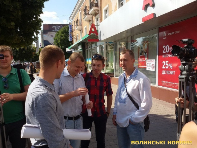 Акція протесту щодо функціонування російських банків на території Волинської області відбулася сьогодні, 19 серпня, в центрі Луцька.