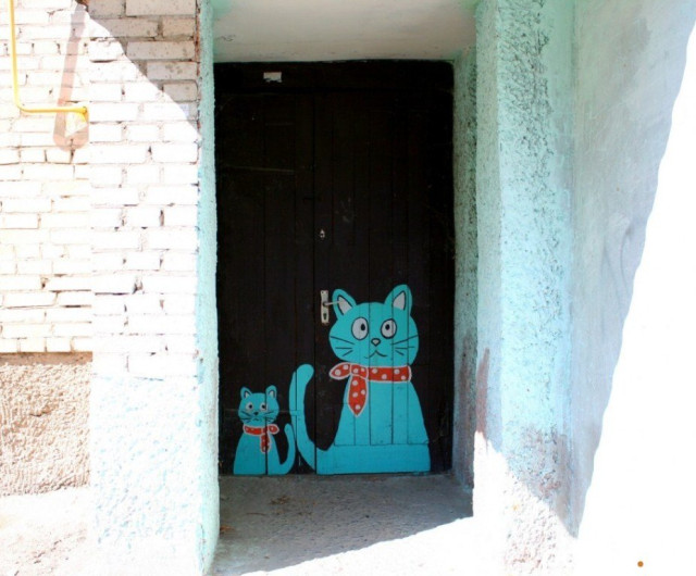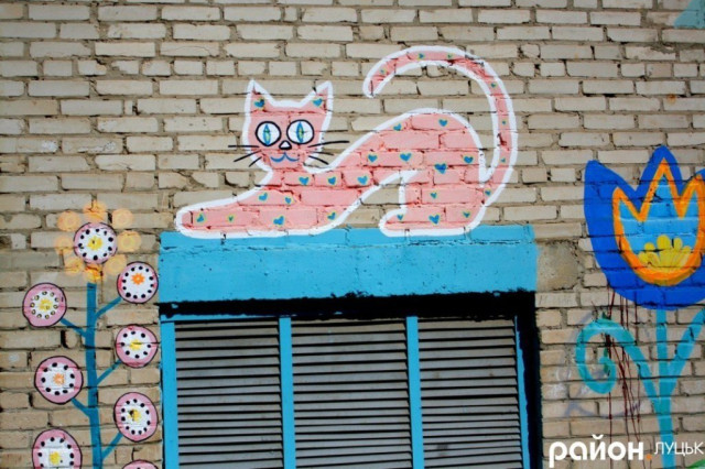 «У нас тут багато котиків. Ми їх дуже любимо і тому тема котів нам близька як нікому. Спочатку ми робили дитячий майданчик, а потім воно так все одне за одне чіплялося і вирішили розмалювати ще й стіни і двері будинку», – розповіла Наталія Гуркіна.