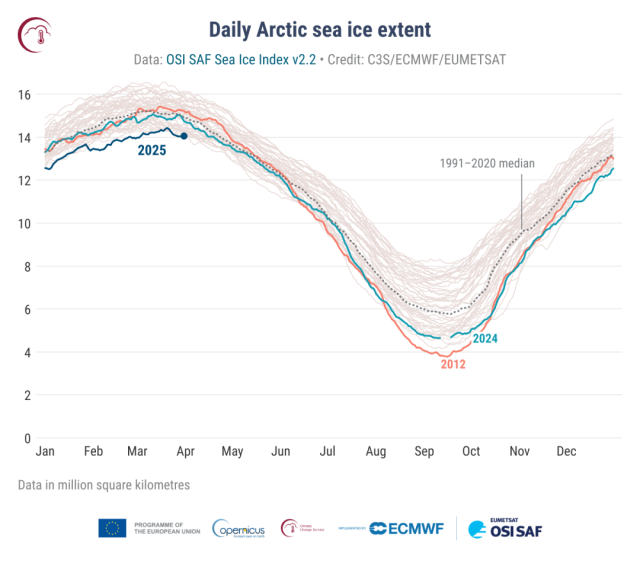 Про це йдеться в опублікованому у вівторок, 8 квітня, пресрелізі Європейського кліматичного агентства Copernicus (C3S), передає Укрінформ.