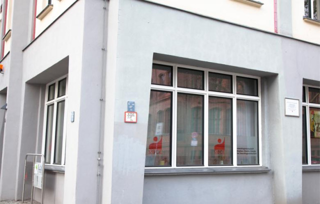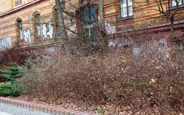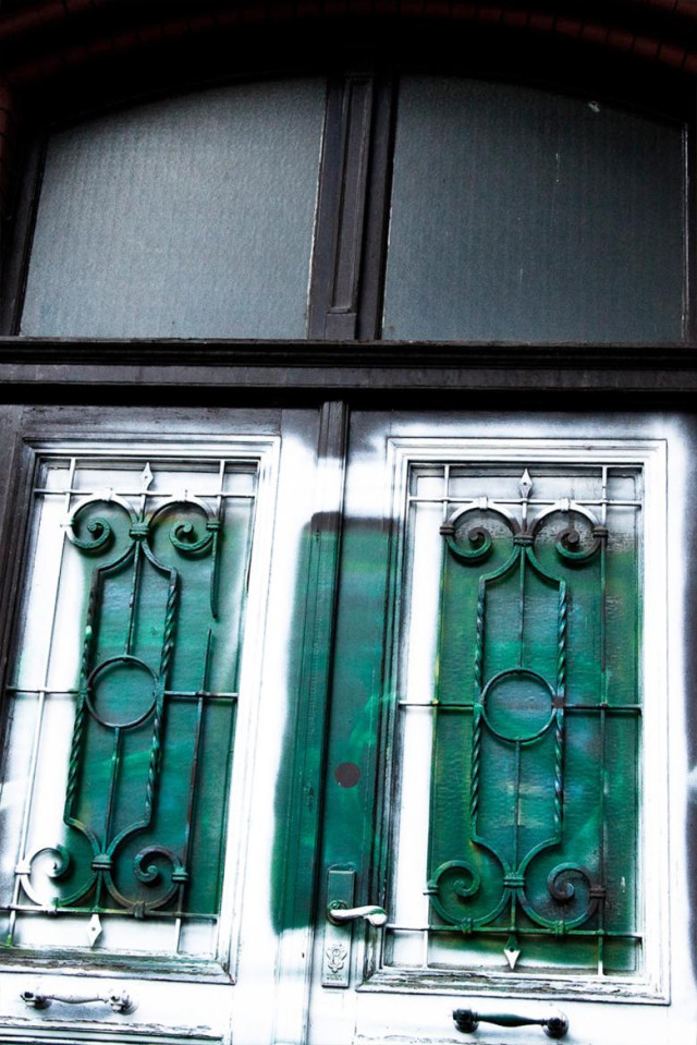 На цій самій вулиці на параді вишикувалися радянські вояки перед будівлею радянської військової комендатури району. На іншому фото – радянські офіцери перед вхідними дверима будівлі, яка нині має зовсім не офіційний вигляд та вкрита графіті.