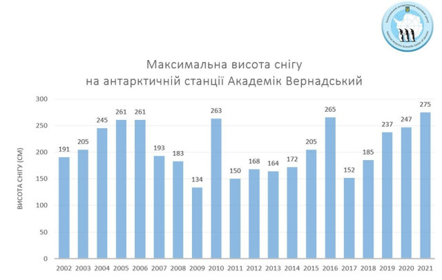 Полярники опублікували графік, з якого видно, що попередній рекорд було зафіксовано у 2016-му й становив 2,65 м, тобто на 10 см менше.Учасники експедиції зазначають, що на острові, де розташовується станція, і тепер сніжить. І це при тому, що в Антарктиді зараз літо.