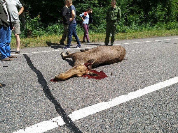 Біля Маневич мікроавтобус збив лося. Фото 18+