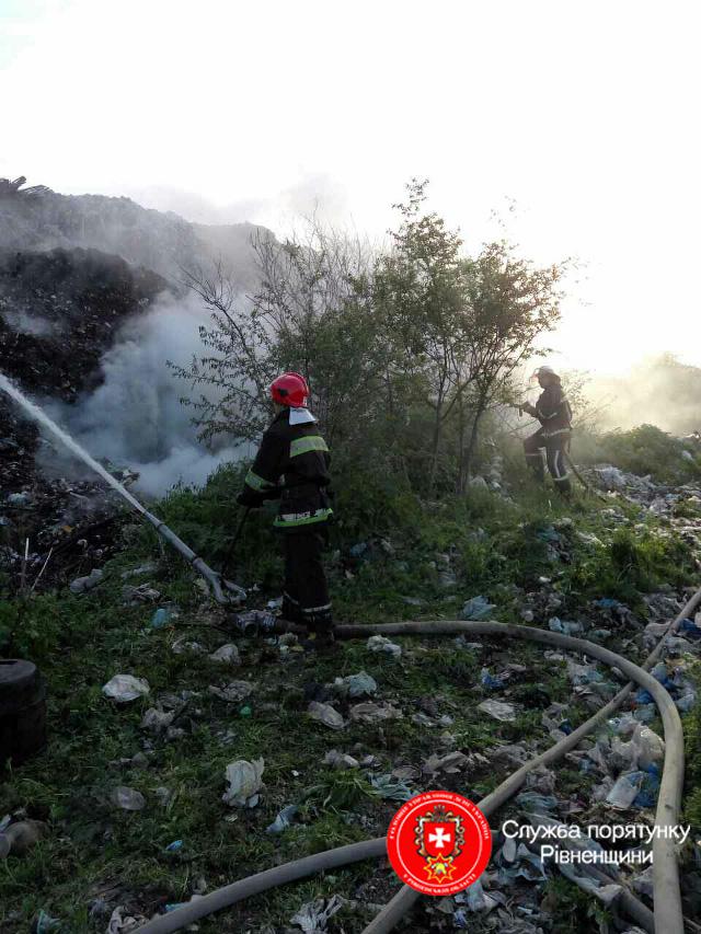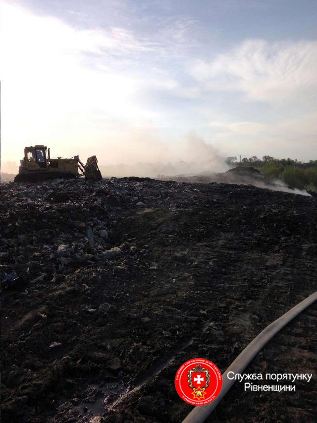 На околиці Рівного понад півдоби палав сміттєвий полігон: зайнялося триста квадратних метрів відходів.