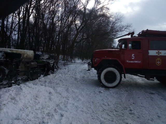 До місця виклику прибули працівники 5-ої Державної пожежно-рятувальної частини містам Нововолинська. Вони відбуксирували автомобіль на стійку ділянку дороги й поставили його на колеса.