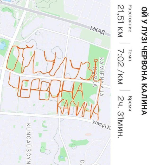 Білорус під час пробіжок «малює» маршрути на підтримку українців. Фото