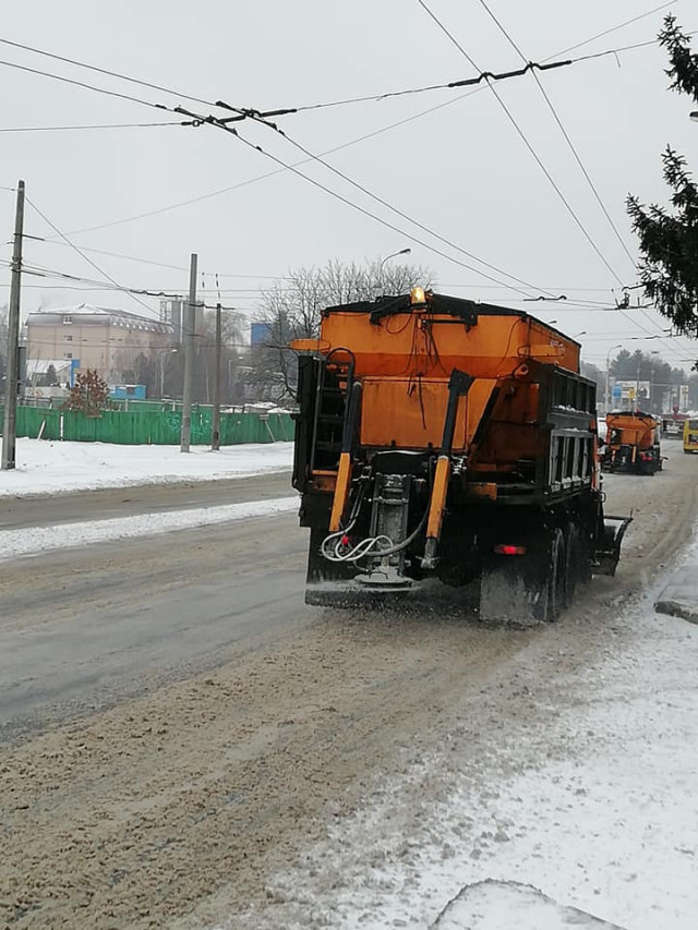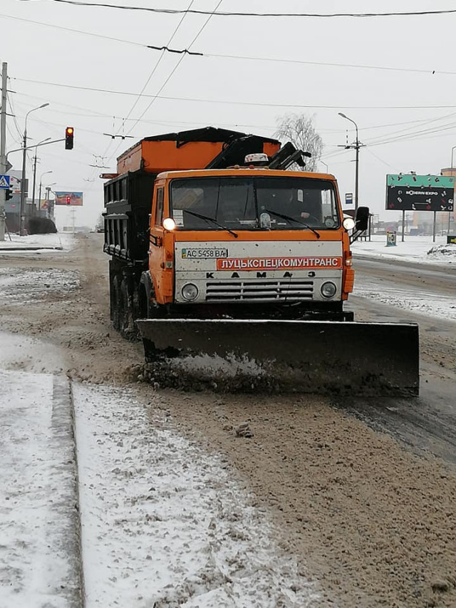 Станом на 15:30 дороги та тротуари Луцька, які засипає рясним снігом, чистять 12 одиниць тротуарної техніки та 8 одиниць великих снігоочисних машин. До прибирання міста задіяні також солерозкидачі та машини з відвалами, які працююють у «трійках».