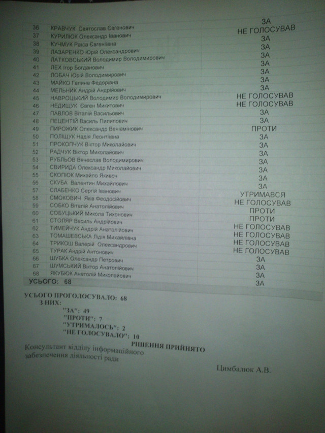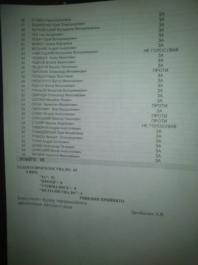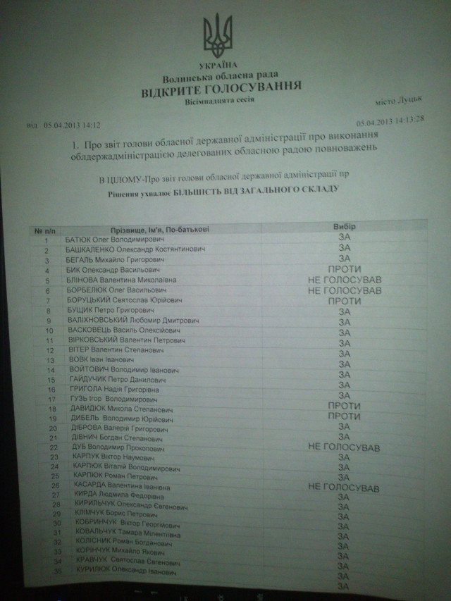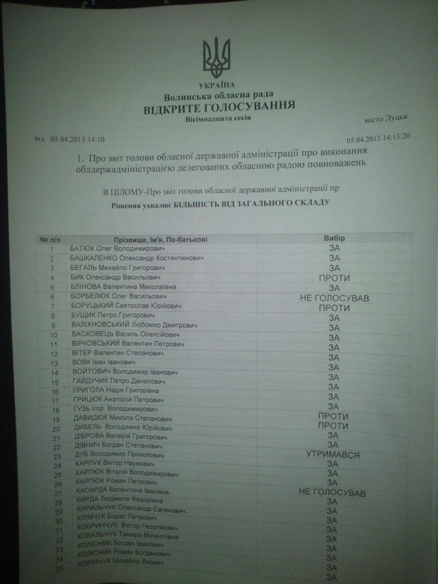 Тож, «за» звіт Борис Клімчука проголосували 51 з 65 депутатів Волинської облради, а 8 не підтримали його, проголосувавши «проти».