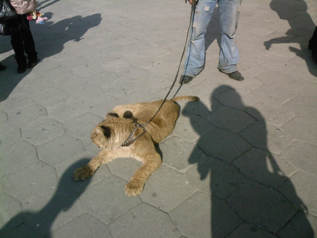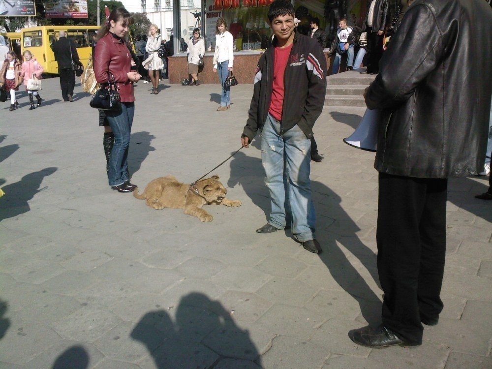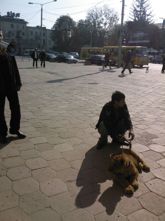 Біля універмагу в Луцьку розгулює лев. ФОТО