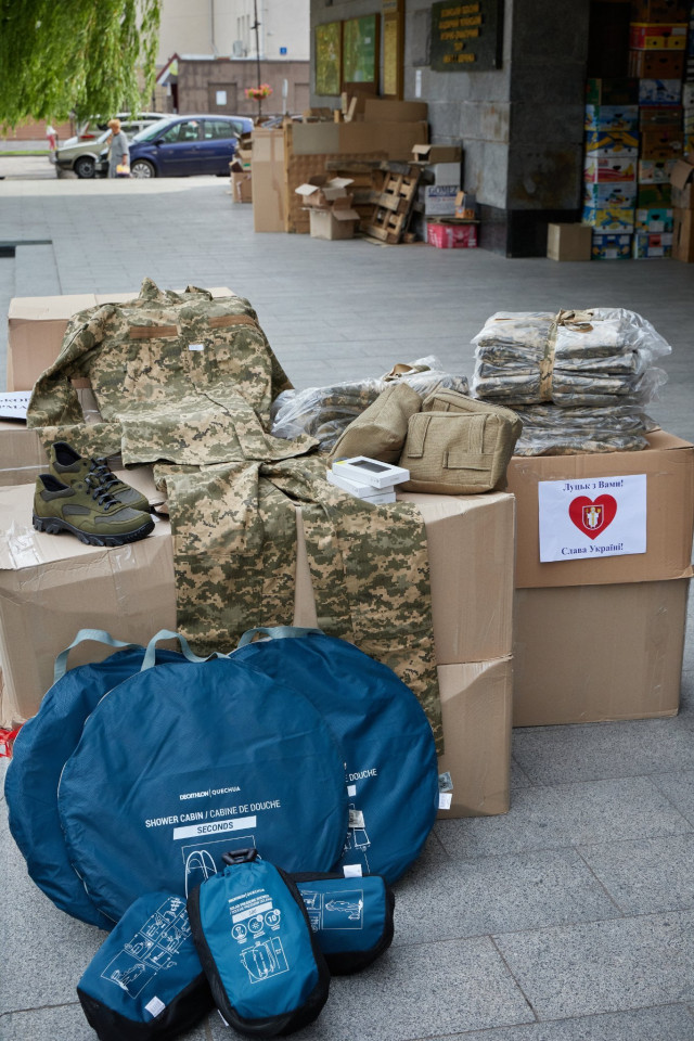 Як повідомив Луцький міський голова Ігор Поліщук, також передали павербанки, літні душі та інші речі.