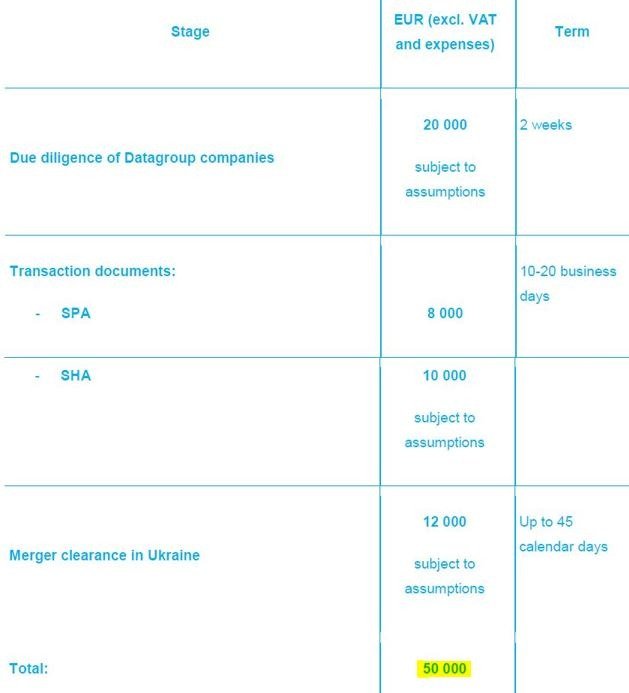 «Мы искренне надеемся, что благодаря указанному выше обладаем уникальным опытом, который поможем Вашему клиенту не только успешно завершить сделку, но и максимальном увеличить стоимости инвестиции в Украину в дальнейшем. Мы понимаем опасения Вашего клиента в связи с первой инвестицией в Украину и хотели бы стать для него надежным украинским партнером».