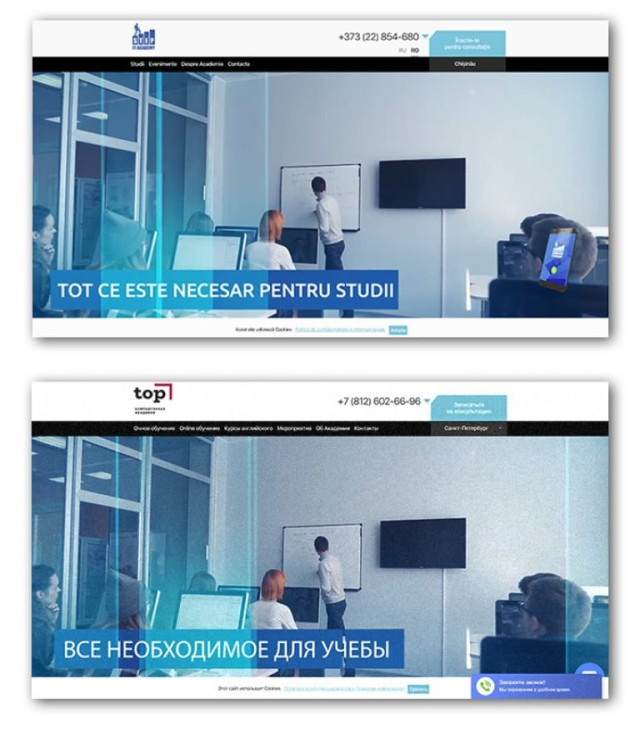 1. Основний сайт академії – itstep.org. Упродовж місяця війни ресурс itsteprf.ru з контентом та логотипом «ШАГ» працював в Росії. З ним були пов’язані і сайти російських філій: msk.itstep.org, nn.itstep.org або omsk.itstep.org.