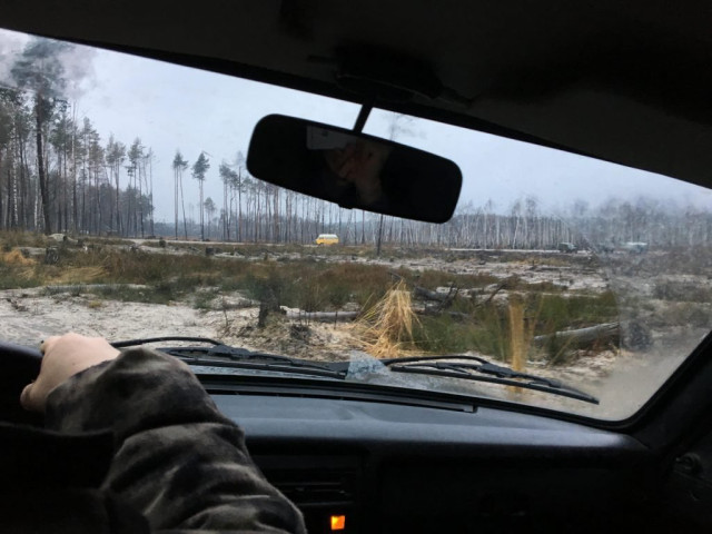 Так виглядають вже відпрацьовані місця в Олевському районі, де старателі вже все перекопали. Випалена пустеля, на якій ліс знову виросте в кращому випадку через десятки років. Ці старі «клондайки» просто кидають, і ніхто не проводить на них ніякої рекультивації. Чи не відновлюється родючий шар, не проводиться висадка дерев.