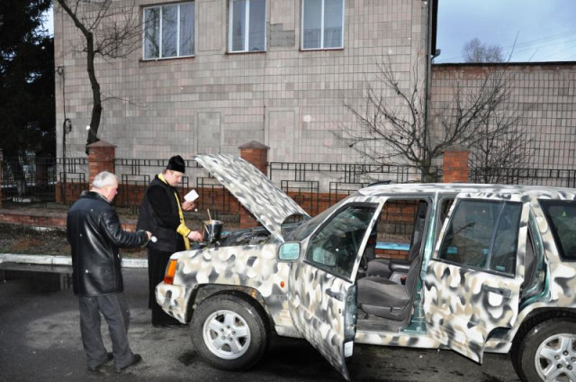 Настоятель Свято-Миколаївського храму м. Каменя-Каширського отець Володимир освятив автомобіль та передав хлопцям на передову ладанки і іконку, щоб оберігали бійців.