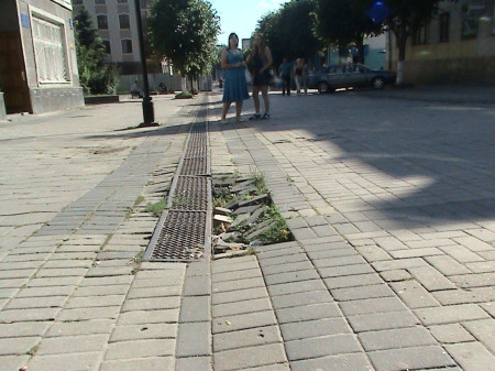 Нині ж вулиця дуже нерівна, із вибоїнами, через що кожен пішохід ризикує впасти і отримати травми. На ній майже наполовину провалені бокові решітки. І навіть приблизно протягом двох місяців ніхто не латав яму завширшки півметра на півметра і завглибшки сорок-п’ятдесят сантиметрів. Її ліквідували лише два дні тому. Директор департаменту ЖКГ запевнив, що роботи з надання нового обличчя центральній вулиці міста почнуться раніше, ніж реконструкція Театрального майдану.
