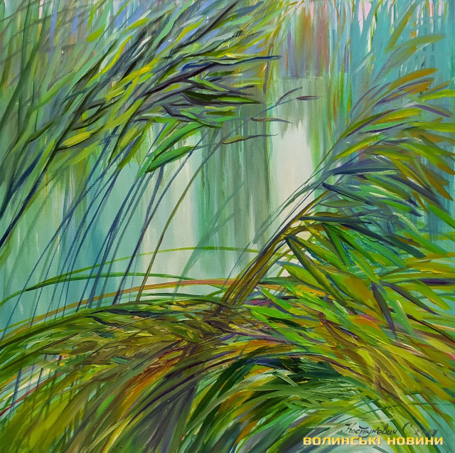 Стара дерев’яна хата, загублена у заростях папороті, човен на лісовому озері серед комишів, запашне різнотрав’я волинських лугів і краса польових квітів – на полотнах знаної художниці Світлани Костукевич оживають рідні поліські краєвиди, оспівані у знаменитій драмі-феєрії «Лісова пісня» Лесі Українки. Нова експозиція в рамках проєкту «Лесиними стежками», який протягом 2021 року проводить Волинська організація Національної спілки художників України з нагоди 150-річчя нашої видатної землячки, днями відкрилася для огляду в малій залі Галереї мистецтв ВО НСХУ.На створення цих полотен художницю надихнули твори Лесі Українки та залюбленість поетеси у волинську природу, висловлена у віршованих рядках. Окрім того, як розповіла на зустрічі з першими глядачами Світлана Семенівна, в основу одного із сюжетів лягли її дитячі враження від поїздки в село Колодяжне: «Я була маленькою дівчинкою, коли разом з батьками приїхала в Колодяжне. Все навколо захоплювало і дивувало мене до глибини дитячої душі! Я вірила усім казкам і переказам про лісових жителів, описаних Лесею Українкою. Пригадую, тоді ще була жива няня Лесі, і нам пощастило там її побачити. Сам будинок Косачів потопав у квітах і справив на мене надзвичайно сильні враження».Написанню картини також передувала велика дослідницька праця художниці. Світлана Костукевич відчувала потребу, насамперед у власному сприйнятті, очистити образ Лесі Українки від нав’язаного радянською ідеологією штампу хворобливої революціонерки. Вишуканість юної панночки Лариси Косач у важливий час її життя в поліському селі символічно показують стилізовані у пастельній гамі квіти навколо будинку. Важливою метафорою картини є струмінь світла, який виходить з будинку Косачів, – так авторка візуалізує дух високої культури та просвітницької діяльності цієї родини, що дала Україні багато визначних персоналій.Для шанувальників творчості Світлани Костукевич, колег-художників та знавців ця мисткиня відома як віртуозна пейзажистка, авторка витончених натюрмортів. Вже багато років вона зберігає відданість непростій, на думку багатьох професійних художників, темі – квітам. Серед її численних квіткових сюжетів нема двох однакових, кожна композиція унікальна, розповідає вона.І немає значення, в якій техніці їй працювати: у багатому доробку Світлани Семенівни є акварелі, олійний живопис, твори акрилом, витинанки, розписи по тканині, гобелени та експерименти у мішаних техніках. Мисткиня почувається вільно у різноманітті стилів і напрямів від гіперреалізму до народних стилізацій, майстерно володіє кольором для передачі широкого спектру людських переживань і настроїв. Для цієї тематичної експозиції вона запропонувала серію пейзажів, створених в емоційному співзвуччі з поетичними картинами поліської природи Лесі Українки.Невипадковим для авторки виставки став весняний час її проведення. «Художники та їхні картини потрібні для того, щоб пробуджувати людей», – переконана Світлана Семенівна, і в ширшому сенсі пов’язує весняне пробудження природи з місією митців – поетів, художників – надихати людей до внутрішнього оновлення, переосмислення життя, готовності до еволюційних зрушень.