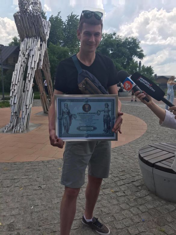 Допоміг парі розрізати ланцюги представник Нацреєстру рекордів Віталій Зорін, у присутності якого пара Олександра і Вікторії із Харкова сковувала себе.
