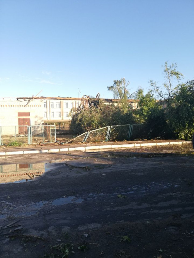 «Станом на теперішній момент зафіксовано: розкрито дах школи (3760 кв. м); розбито металопластикові вікна (7 вікон та склоблоки в спортивній залі, металопластиковий вхідний тамбур); повалено дерева на території обох корпусів школи», – зазначив він.