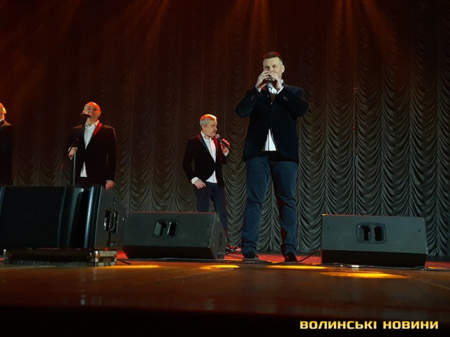Виступ розпочався із спільного виконання колядки «Добрий вечір тобі», яку підхопив увесь зал.«Насамперед приємно привітати у цій залі наших захисників цілісної України. Щиро дякуємо вам за те, що бороните нашу землю, за всю вашу відвагу, вашу силу. Ми поважаємо вас і дуже вдячні. Низький вам уклін! І, звичайно, хочеться також подякувати усім, хто став частиною того великого українського війська. Кожен допомагає чим може, щоб ми перемогли. Тільки коли ми будемо разом, єдиним військом, однією країною – ми неодмінно переможемо», – звернулися з вітальними словами учасники колективу.Читати ще: «Ці вуса звели з розуму не одну Марину». У Луцьку на підтримку ЗСУ виступив Павло Зібров. Фоторепортаж