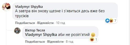 Низка користувачів у Facebook звернули увагу на зовнішній вигляд екссудді – Чаус був у спортивному костюмі, а не в трусах, як на попередньому фото, зробленому у Вінницькій області.