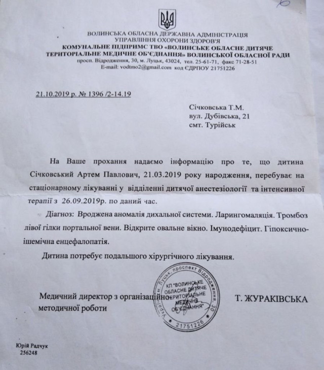 Дворічному Артему Січковському з Турійська потрібна термінова фінансова допомога для продовження лікування.