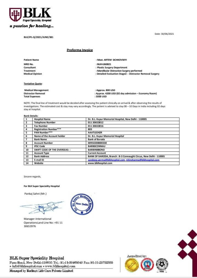 Завдяки небайдужим людям, які відгукнулись на чужу біду, в Артемка з’явився шанс на одужання: лікарі в Нью-Делі (Індія) зробили складну і життєво необхідну операцію.