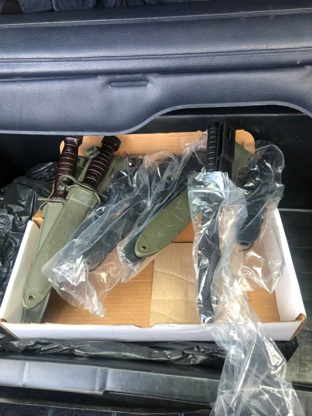 Три вживані та п'ять нових ножів лежали в картонній коробці на задньому сидінні автомобіля. Їх виявили під час проведення повного митного огляду транспортного засобу, який в'їжджав «зеленим коридором».