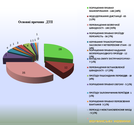 Основні причини автопригод: порушення правил маневрування, недотримання дистанції, перевищення швидкості