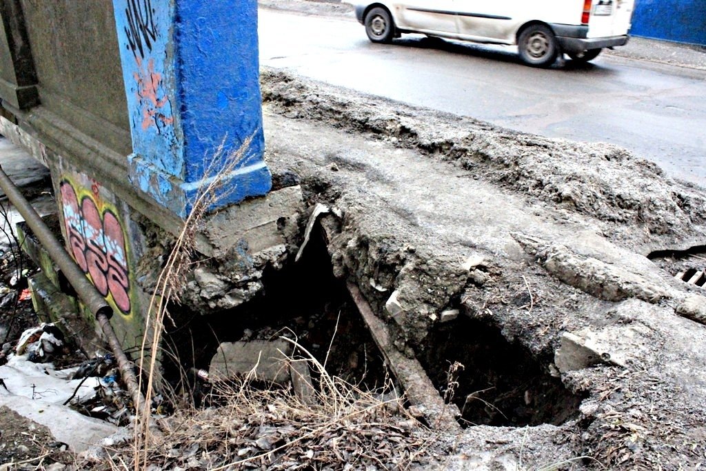 Через діри на луцьких мостах видно небо. ФОТОРЕПОРТАЖ