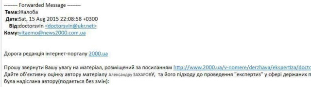 У листі йдеться, що публікація видання «2000.ua» дискредитує роботу прес-служби Волинської ОДА. У цьому зв'язку виникає питання: кого намагається дискредитувати сам автор листа, що розсилає його з електронної адреси [email protected], а не з офіційної адреси ОДА [email protected]?