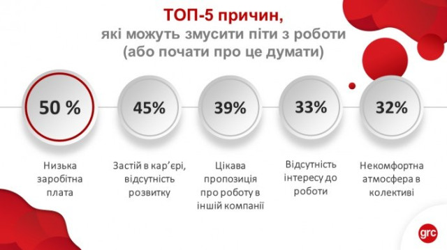 Для 50% опитаних причиною піти з роботи (або почати про це думати) стане низька заробітна плата;