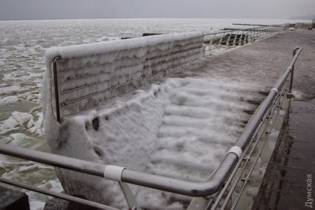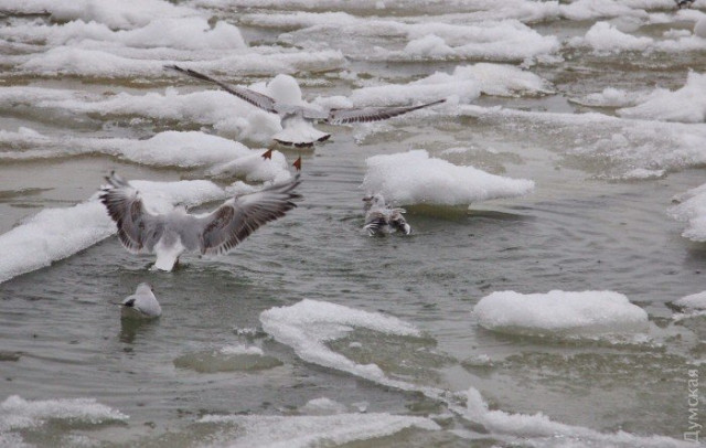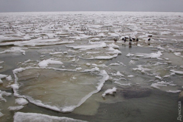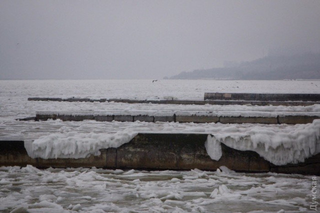 Одеську затоку продовжує вкривати крига. Лід на Чорному морі простягнувся на сотні метрів.