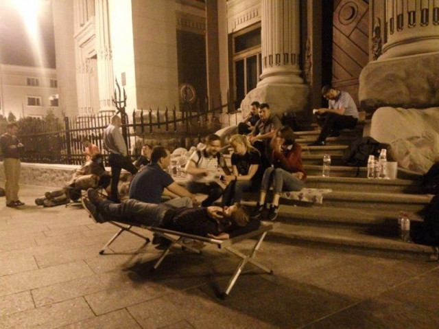 Ближче до опівночі хтось з нардепів приніс кошик для сміття до Будинку з Химерами. Мовляв, хай це буде символ протесту – кидатимемо туди сміття.