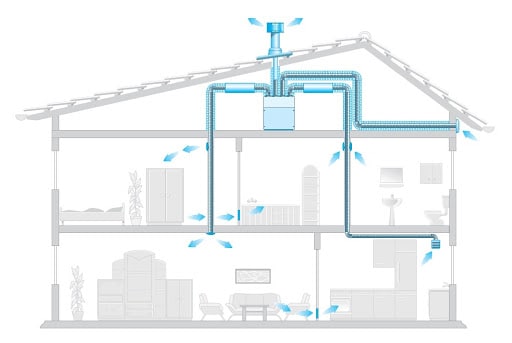 • Припливна вентиляція нагнітає та розподіляє по кімнатах свіже повітря з вулиці. Використовується у разі, якщо потік відпрацьованих газів зможе залишити приміщення самостійно;