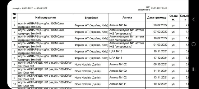 Зокрема, на Волині життєво необхідний препарат для діабетиків є в усіх аптеках області.Адреси, телефони та графік роботи можна прочитати за посиланням. Нагадаємо, станом на 2 березня у Волинській області працювали 490 аптек та аптечних пунктів з 519 зареєстрованих. Проте графік роботи може бути змінений у зв’язку з комендантською годиною.