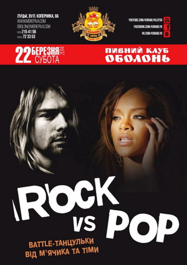 • «Pop Vs. Rock». Батл-танцульки від М’ячика та Тіми у пивному клубі "Оболонь" (Кораблик)| 22.03, субота