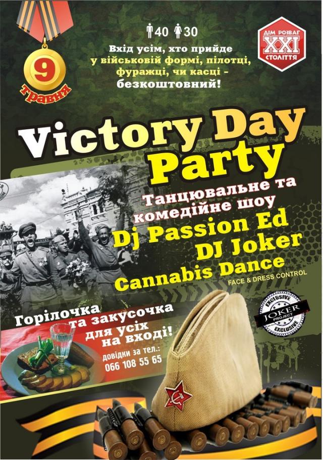 9 травня в клубі ХХІ століття Victori day party. Вхід у пілотках та гімнастерках безкоштовний. На вас чекає танцювальне та комедійне шоу.