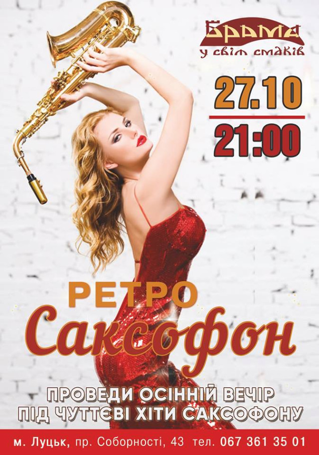 Ретро Саксофон у ресторації «Брама» | 27 жовтня, п'ятниця