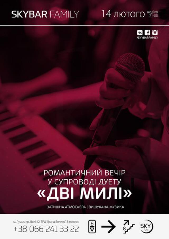 Виступ кавер-бенду «Дві милі» у SkyBar | 14 лютого, неділя