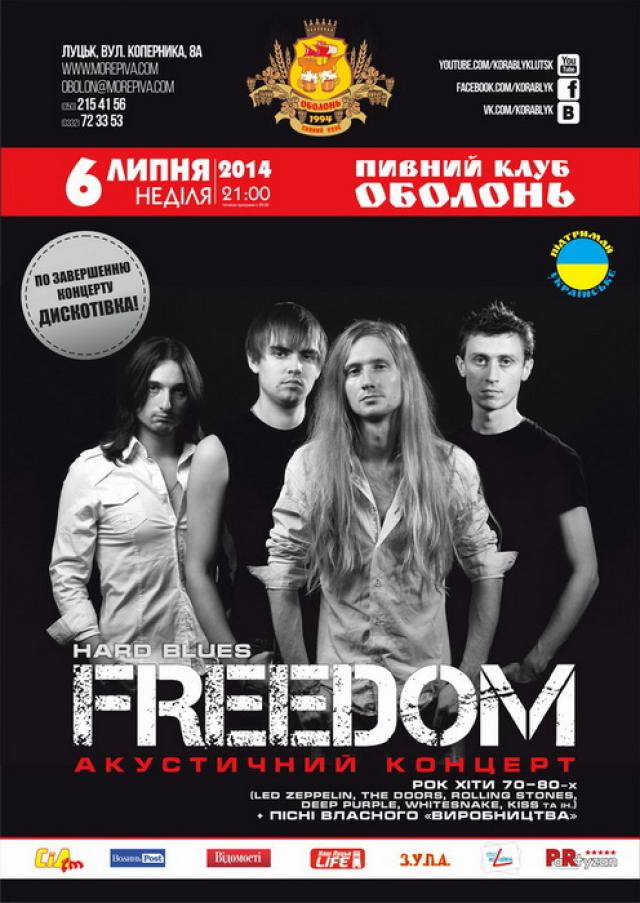 Луцький гурт «Freedom» знову заграє у "Кораблику" добрячу порцію рок хітів 70-80-х років.